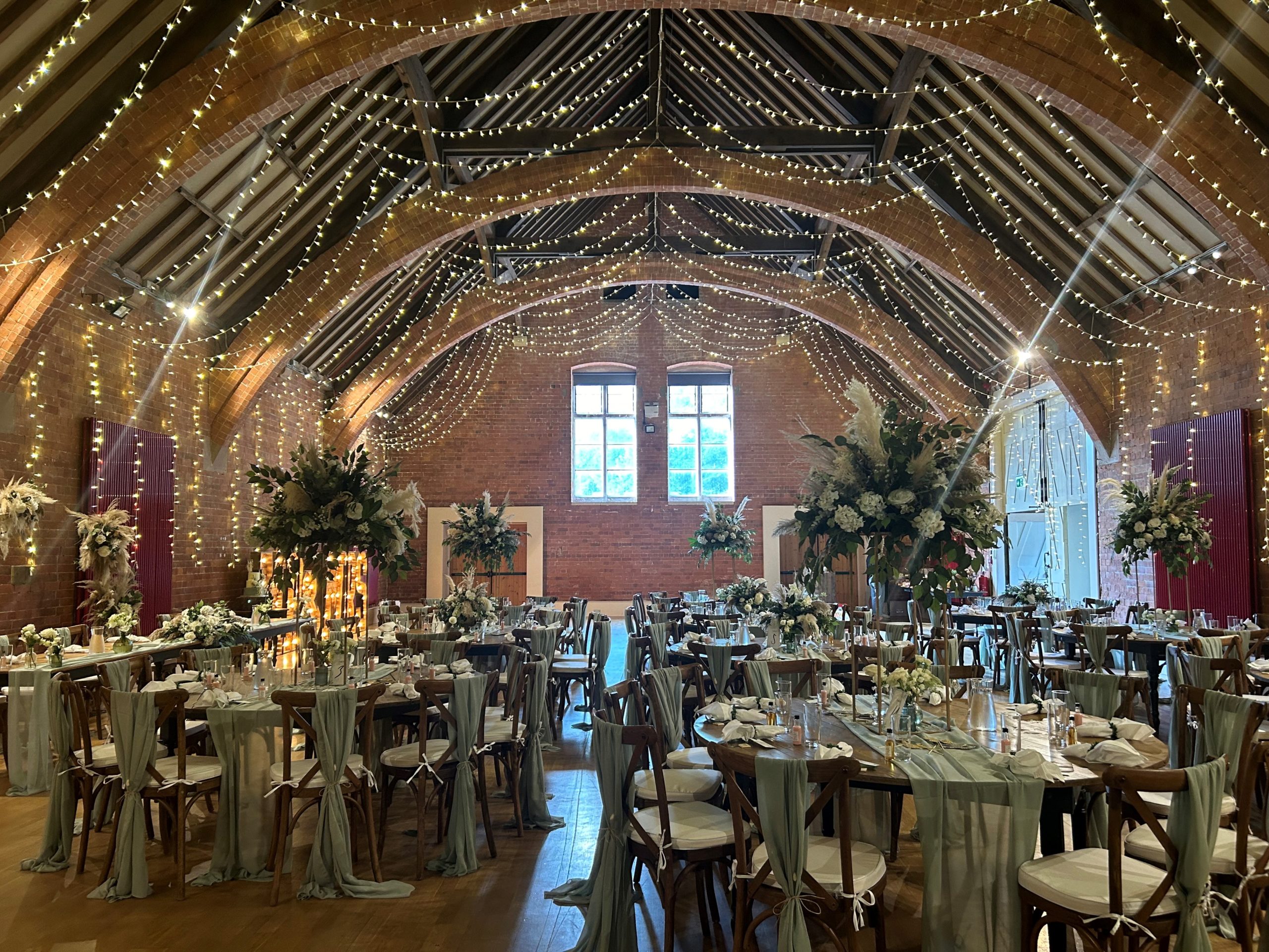 Exposed bricks and wooden beams, The Riding Hall is the ultimate in stripped back elegance and makes the most of the Victorian-style architecture. The soaring brick arch features and romantic lighting gives the most amazing wedding space. The Riding Hall can accommodate up to 170 guests for a seated dinner and up to 200 guests for a drink’s reception. The private use of our beautiful secret garden featuring a wooden gazebo licenced for ceremonies and manicured lawns, make for an enchanting setting for your ceremony or back drop for your wedding photos. It’s also perfect for cocktail hour and garden games.