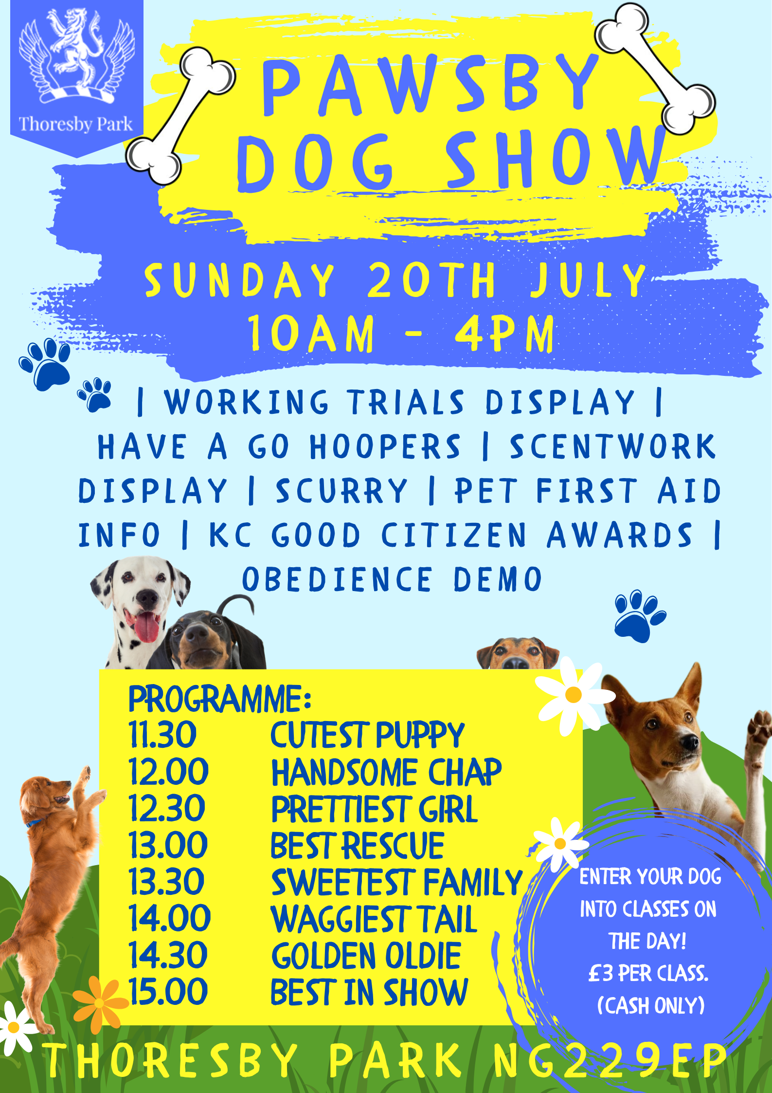 Our annual Pawsby Dog Show is back on Sunday 20th July plus the new Thoresby Park Country Fair!