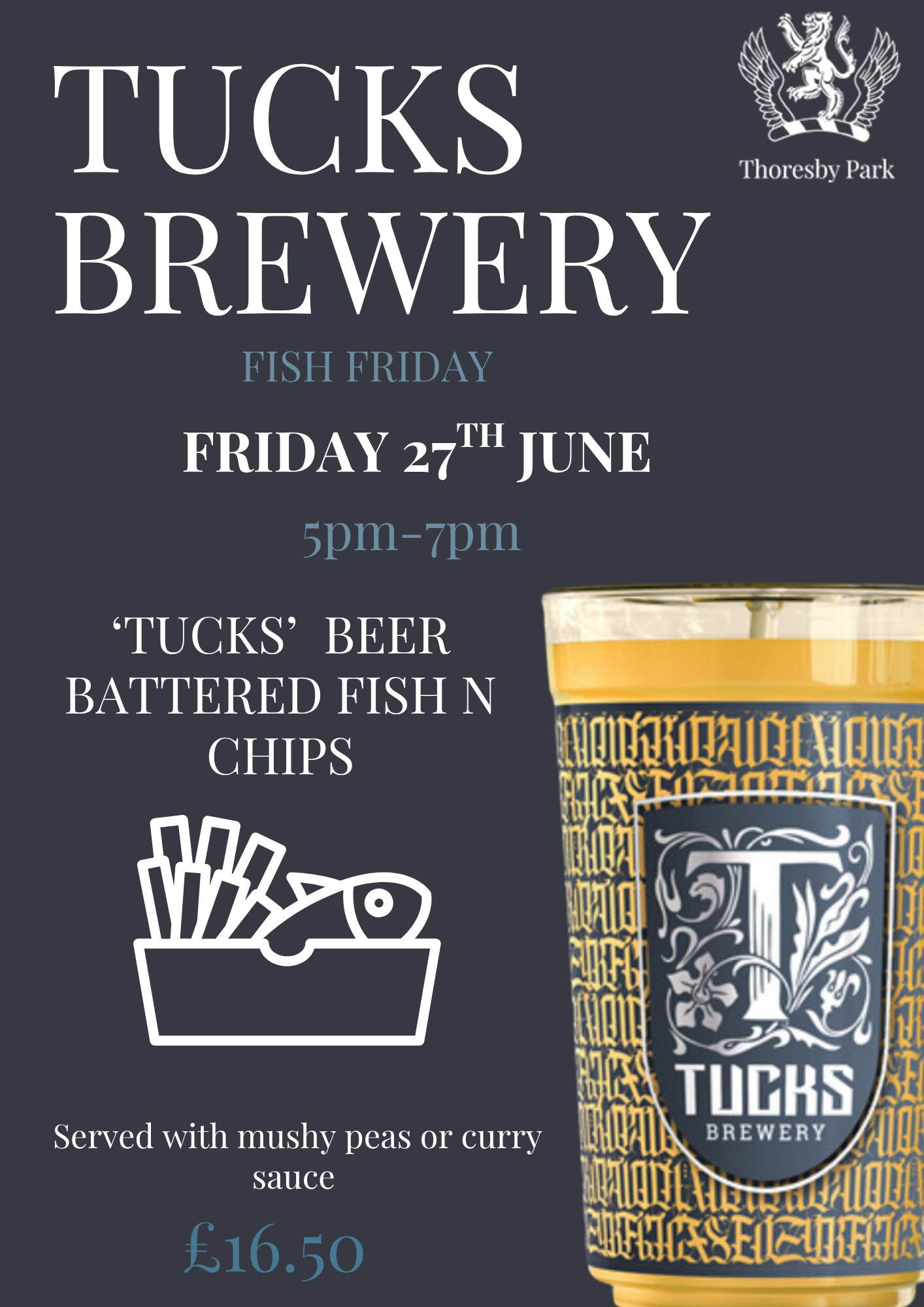 Join Tucks Brewery on Friday 27th June for a ‘TUCKS’ beer with a fish & chips.