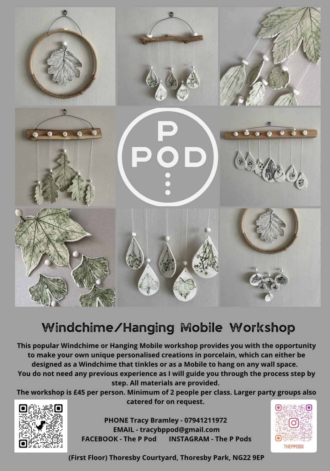 This popular windchime or hanging mobile workshop provides you with the opportunity to make your own unique personalised creations in porcelain, which can either be designed as a windchime that tinkles or as a mobile to hang on any wall space.